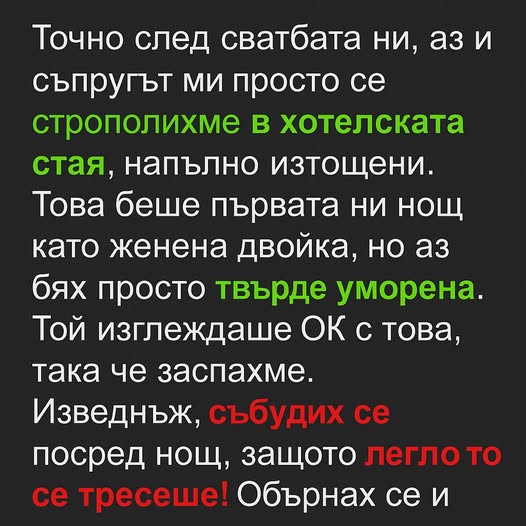 В нощта на сватбата бях толкова изморена, че изобщо не ми се празнуваше по начина, по който се очакваше от нас двамата.