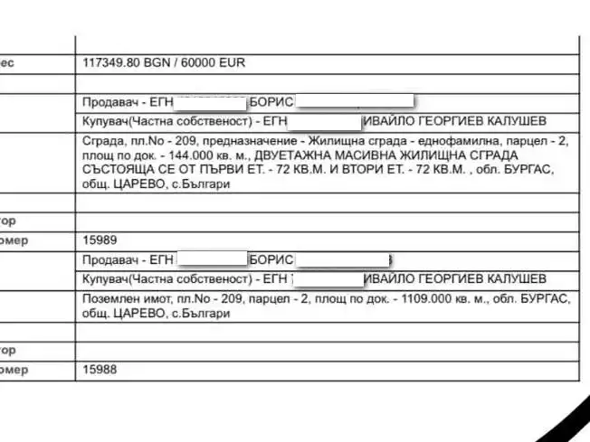 В имотния регистър е записано какво официално се води на името на Ивайло Калушев в община Царево. Все още остава неясно на кого принадлежат останалите декари.